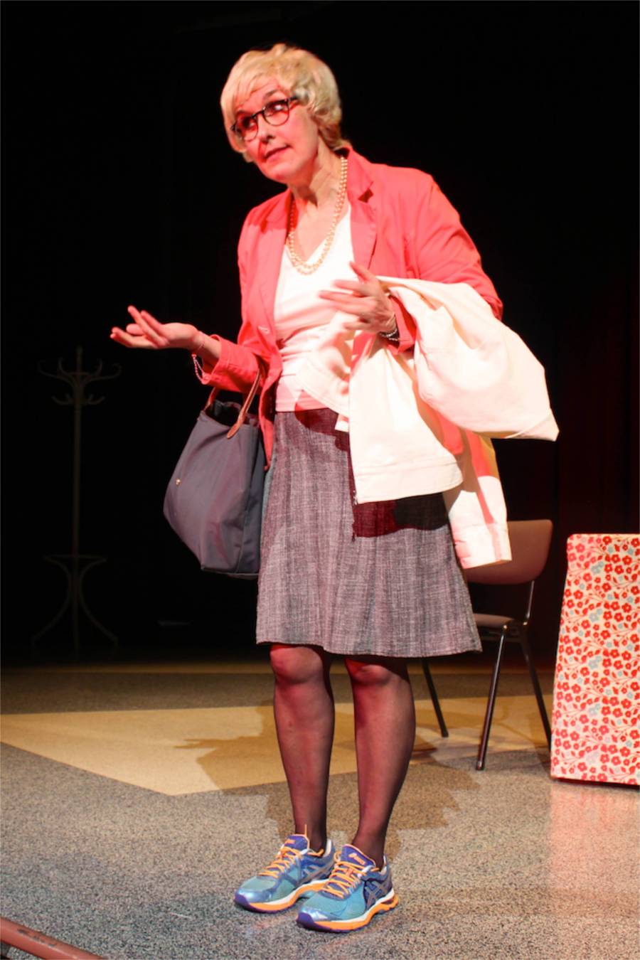 C’est parti pour une heure de cours avec Madame Marguerite ! Il va falloir bien se tenir . La voilà qui occupe tout l’espace sonore et visuel parmi ses élèves d’un soir , c’est à dire …vous , les spectateurs ! Elle enthousiasme et dérange, interpelle et séduit. Sur le ton de la colère, des rires, de la menace ou de l’ironie, elle vous enseigne les choses de la vie et discourt avec véhémence du pouvoir, de l’obéissance, de la sexualité ou encore de la mort. Sujet de la dernière dissertation : « Décrivez votre propre enterrement » !